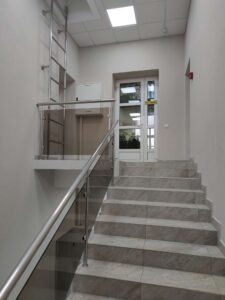 Перила на лестнице были заменены на новые из нержавеющей стали.