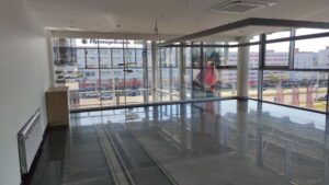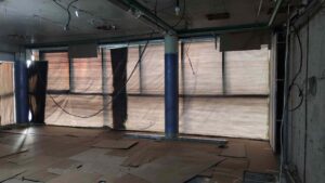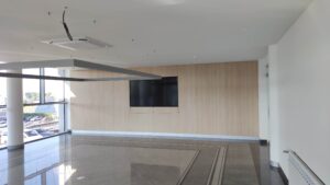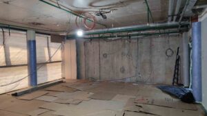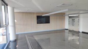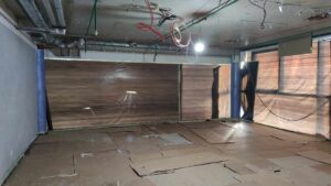 Выполненные работы: демонтажные работы, устройство подвесного потолка, зашивка стен панелями, электромонтажные работы, санитарно-технические работы, работы по модернизации отопления и кондиционирования, малярные работы, устройство системы освещения.