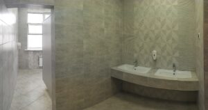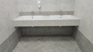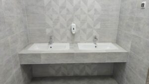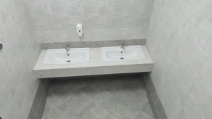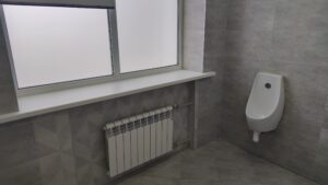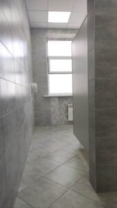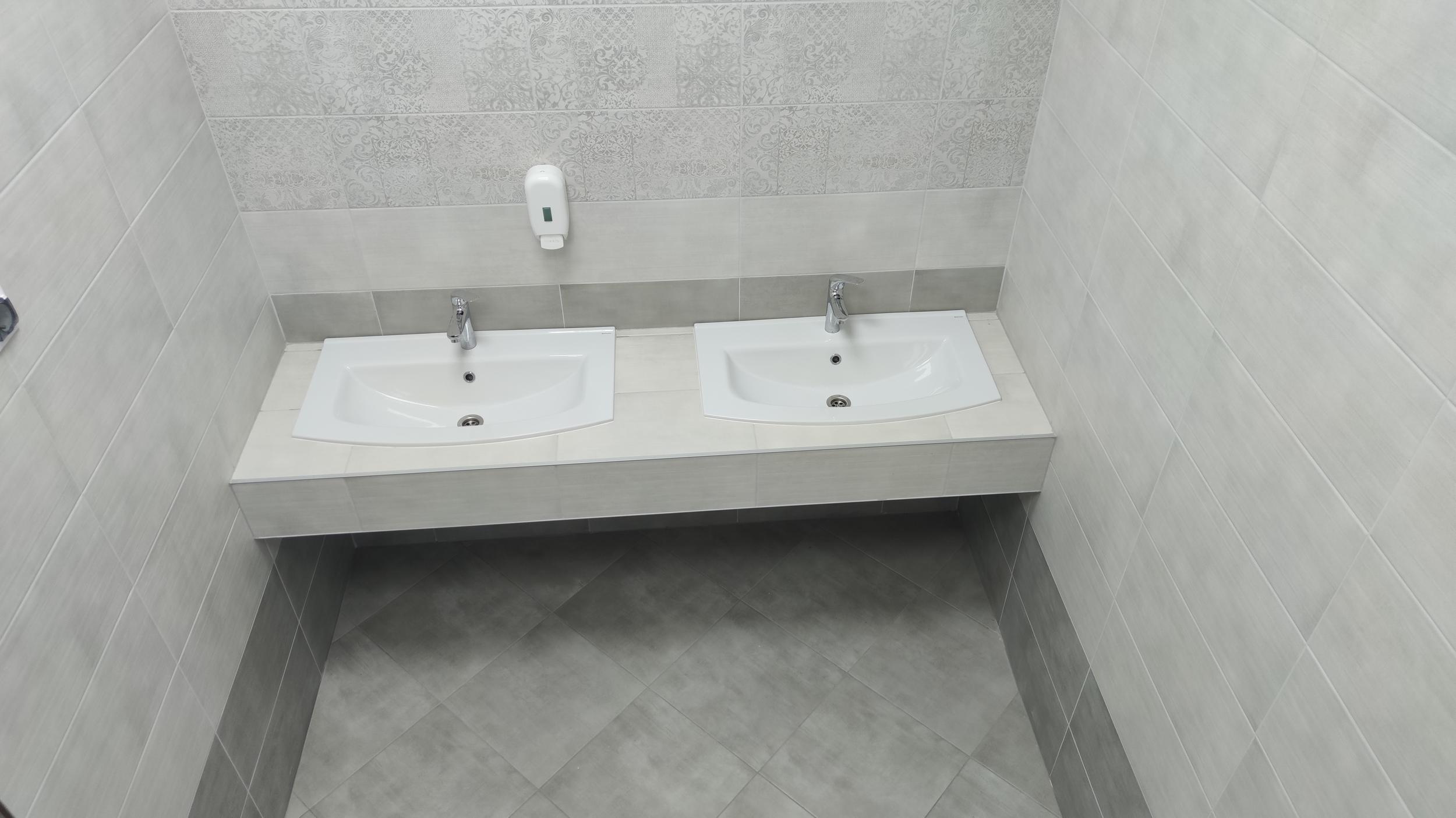 Выполненные работы: демонтажные работы, устройство потолка типа «армстронг», выравнивание стен, устройство стяжки пола, облицовочные работы, гидроизоляционные работы, электромонтажные работы, санитарно-технические работы, работы по модернизации отопления.